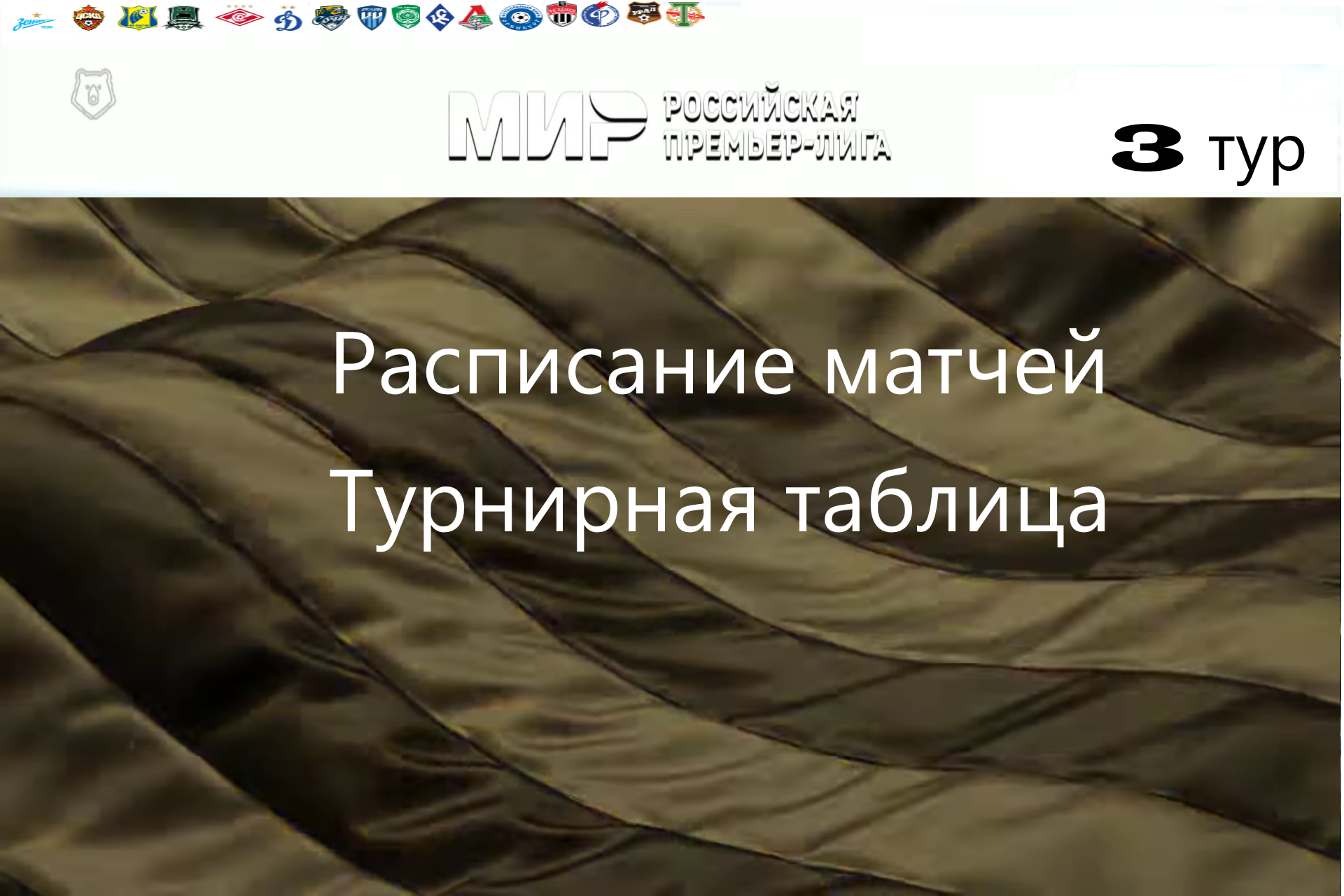 Приветствуем всех любителей спорта ! Представляем вашему вниманию расписание футбольных матчей 3 тура «Российской Премьер Лиги». Так же можно ознакомится с турнирной таблицей команд высшего дивизиона на данный момент и увидеть итоговые результаты матчей 2 тура. Всем удачи и увлекательных просмотров.